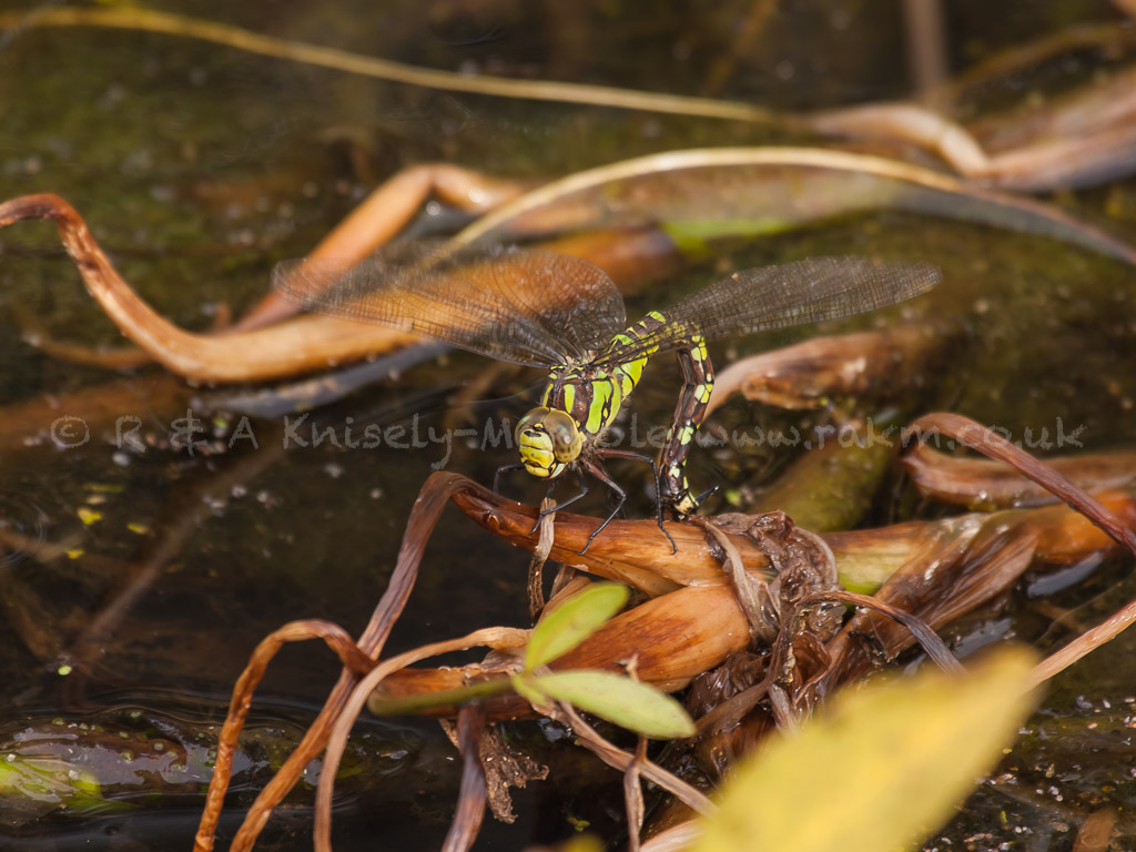 Southern Hawker Dragonfly (Aeshna cyanea) female ovipositing