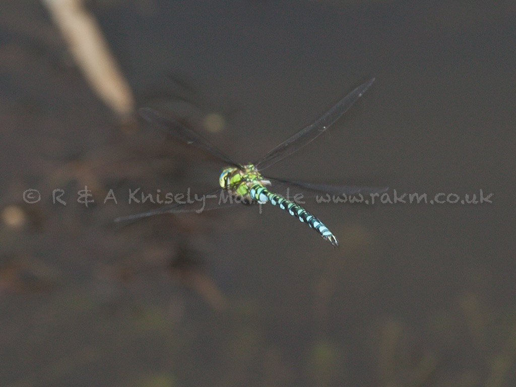 Southern Hawker (Aeshna cyanea) over the Wenlock Pool, Shropshire