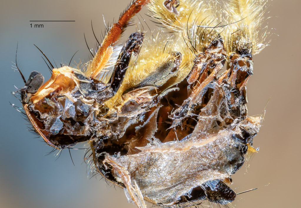 Scathophaga stercoraria - Yellow Dung Fly. Longitudinal section of head and thorax oblique